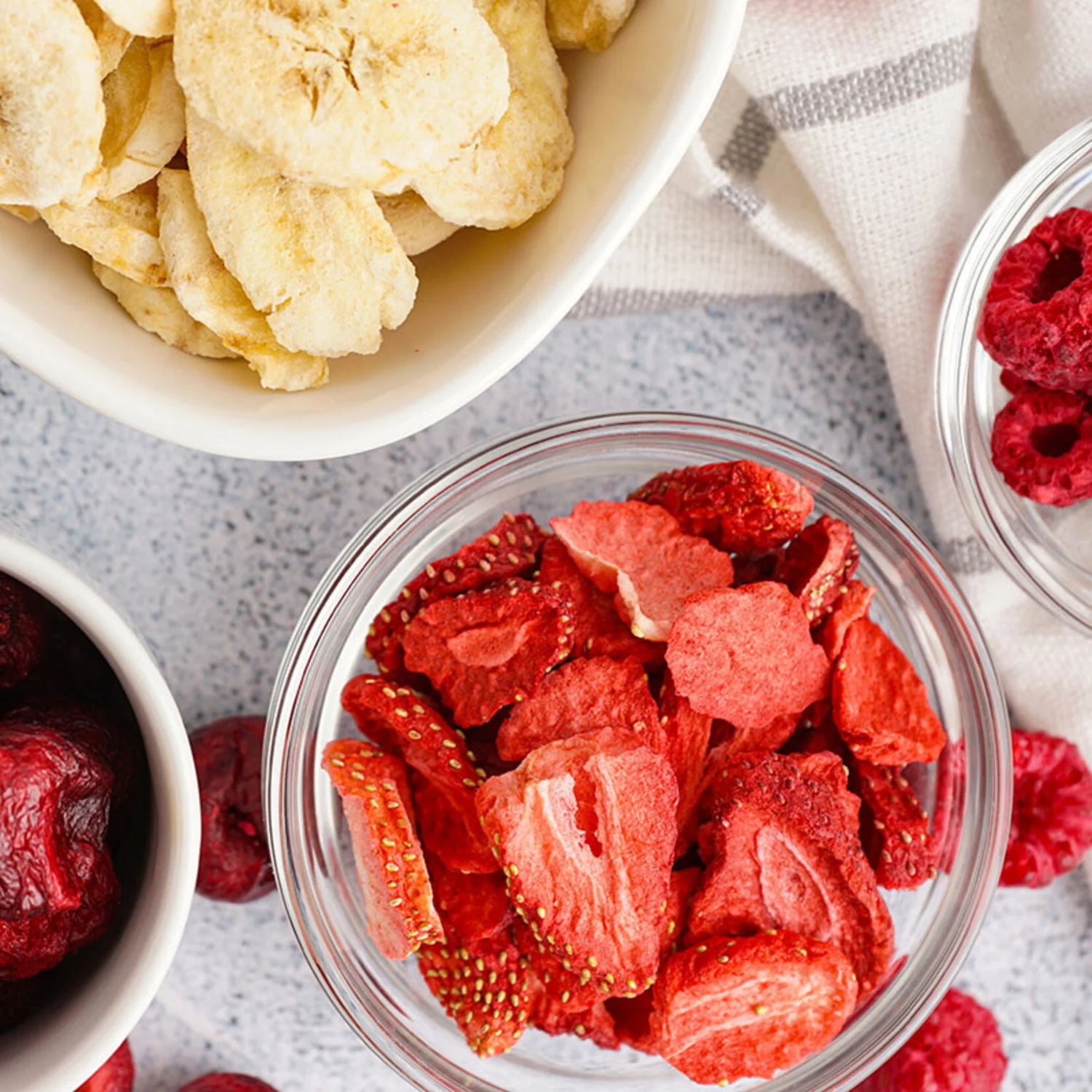 Ürünlerimiz, meyvenin aroması, rengi ve besin değerleri korunacak şekilde kontrollü ve düşük ısıda kurutma yöntemleriyle hazırlanır.